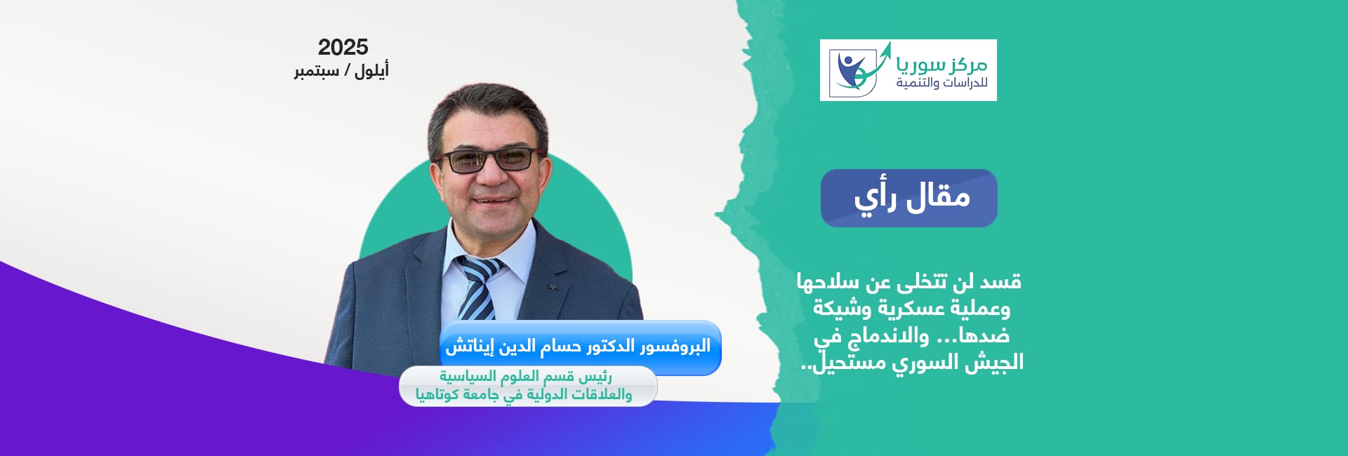 في تقييمه لتصريحات وزيرة الخارجية الألمانية أنالينا بيربوك حول تسليم عين العرب (كوباني) لتركيا ونزع سلاح الـ PKK/YPG، قال الأستاذ الدكتور حسام الدين إيناتش لمركز سوريا للدراسات والتنمية : “من المستحيل